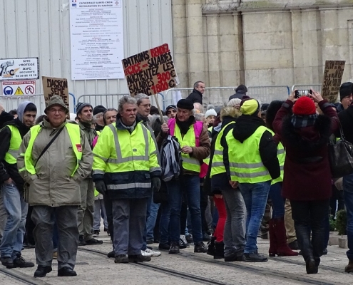 Driving our motorhome south on toll-free routes past the gilets jaunes to Orleans and onwards to just above the Massif Central in France.