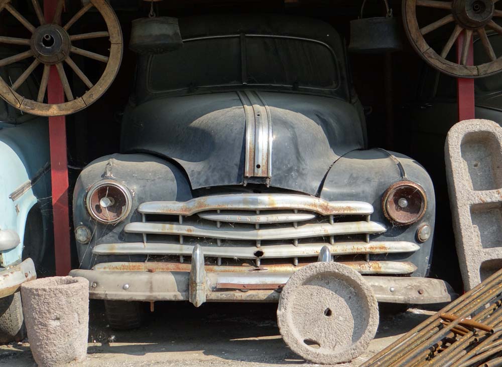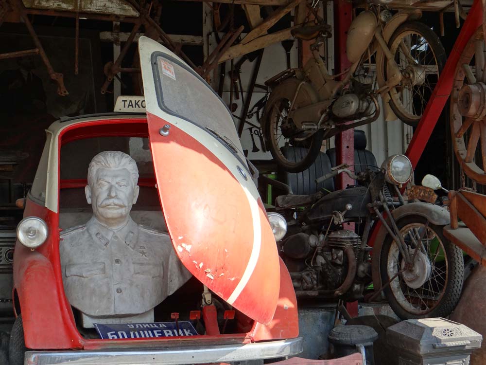 Heading off back down the hill, Dave found himself rolling to a halt outside a scrapyard. Somehow he’s still not broken down though (apart from the unfortunate the Clutch Incident), another Adam and Sophie-inspired attraction attracted us. The place is a goldmine of, arr, stuff. Old stuff, some of it Communist-Era, although the majority I guess is newer. The rolling gate was ajar enough for us to walk in and gape at the stuff in childlike awe. A lad with a straw broom engaged himself in wafting dirt around, completely ignoring us, so out came the camera for a snap-athon:
