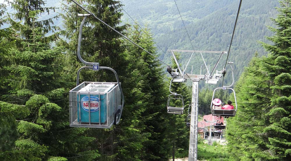 Come 1pm, with Charlie walked and us fed, we geared up, rubbed on some Factor 50, and slogged up to the chair lift, past an array of Bulgarian-registered cars and 4x4s, just a single Russian car breaking the local monopoly. The lift’s 15 Lev each, for a return trip, about €7.50, taking us to Camp 1: 6890 feet. Sadly Team Dave had already started to fragment by this point, no dogs were allowed on the lift and we didn’t fancy the 2km long, 500m up ascent on foot. Dave himself didn’t make it either, for obvious reasons, he’s scared of heights.
