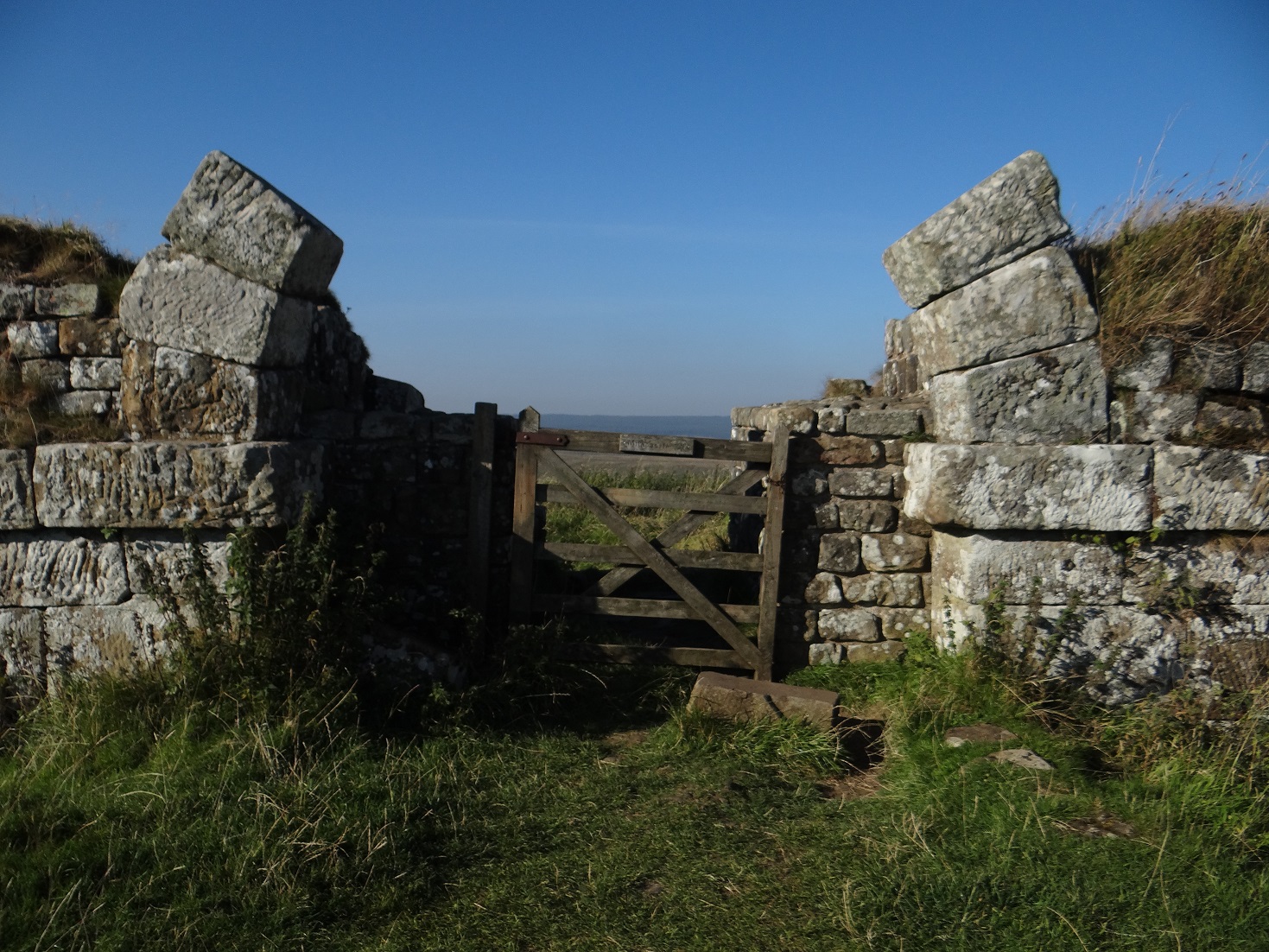 After the Angel we headed for Hadrian’s Wall, this nice straight road runs alongside it. We found ourselves driving down a narrow, twisty bit of road and came to a blind left hand bend. We were almost at a standstill as we rounded it, to find some young fella-me-lad was attempting to apex the corner on our side of he road in his Ford Focus. Imagine his surprise to find himself faced with the White Wall of Hymer. Much shrieking and yelling of expletives and somehow he missed us. I had to check for paint scrape later on. Another of our 9 lives gone.