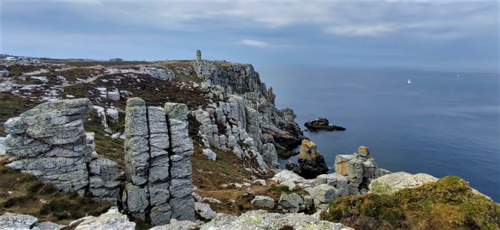 We’ve jokingly said that there is so much to see around Brittany that we’re now only go to places which get three stars on our roadmap. Oceanopolis has three stars, and so does Pointe de Penhir, about a mile from where we are parked. However, it was a comment on this blog from Gina Angeletta that brought us here, and we’re really pleased that we came. Thanks Gina.