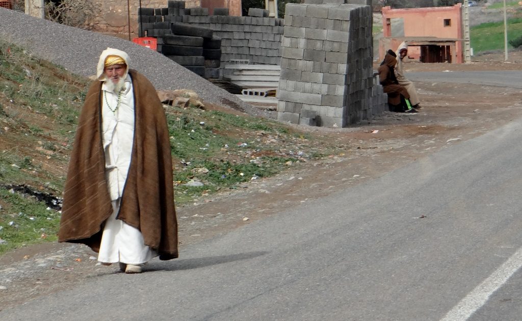 Anyway, sorry, back to the road. We rumbled through the snow and olive hills, the scrubby plants looking weird under the winter conditions, and pulled in at a cashpoint in Azilal. Ju jumped out to top up the Dirham stash, finding the Moroccan in front on her needed help from another random local to get cash out, as they couldn’t see the buttons and screen. Imagine that in the UK: a stranger giving you their card and PIN and asking for help getting money from their machine? I guess it happens, it just seems unlikely to me.