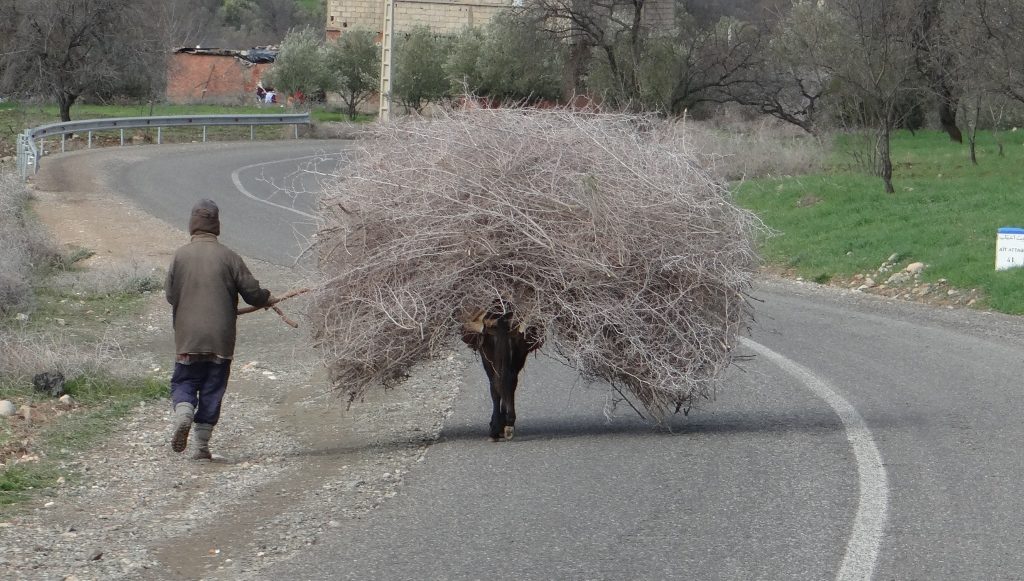 As the road continued, the snow backed off and we peered out the windscreen at the usual sights of rural Morocco: donkeys just visible under huge loads, men walking the road, ladies kneeling in freezing rivers to wash clothes, kids at the side of the street walking to school. Phil and Jules gave a couple of nippers a lift down the road: again something I find unimaginable in my native UK. One of them couldn’t help himself but beg for sweets and small change when they dropped him off.