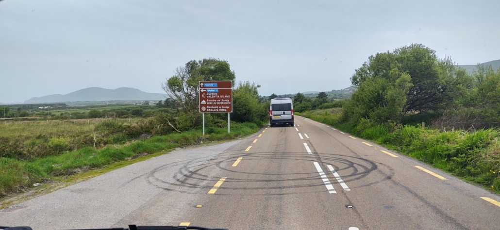 Your mention on the ‘donuts’ really chimed as we saw these everywhere, especially on the most remote roads! Never saw anyone actually ‘laying down rubber’ though; tyres must be cheap in Ireland!!