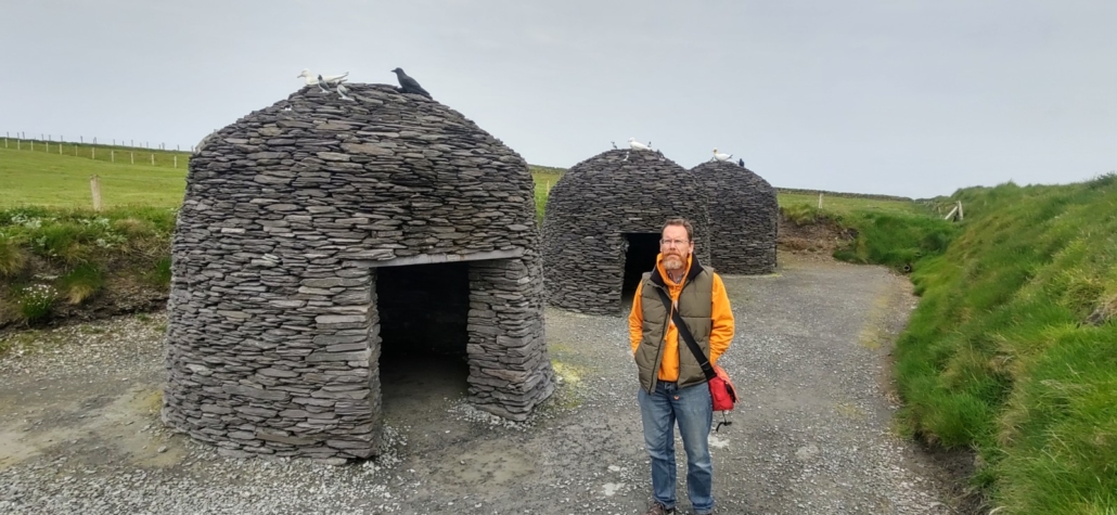 I breathed a sigh of relief when I spotted the ‘no coaches’ sign as we turned onto the narrow road to the cliffs. We parked up and paid our €5 each entry fee. For an extra €20 we could have stayed for the night in a pretty spectacular parking area over looking the cliffs. The ticket office played Irish music and the recreated drystone Clochan (beehive houses) had plastic birds stuck to the top of them. However, at the top of the path by the Wild Atlantic Way marker I peered over the fencing to be once again blown away by the impressiveness of mother nature.