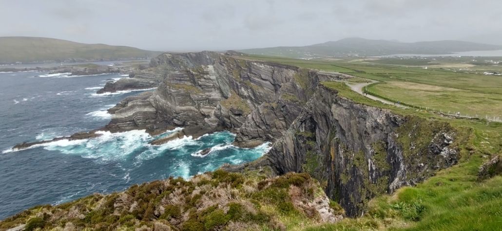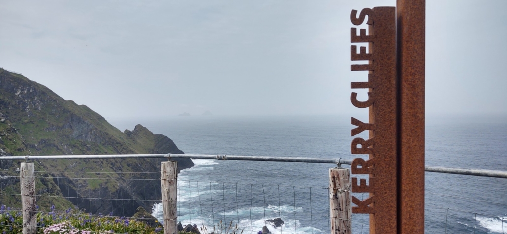 Having experienced ‘The Best Fish and Chips in Ireland’ a couple of days ago, today we stopped at ‘The Best Known View in Ireland’ and drove past ‘The Only Beach Bar in Ireland’ as we made our way to ‘Kerry’s Most Spectacular Cliff’s’. Beginning to see a bit of a theme for overzealous marketing statements, and as the weather was a bit misty, we really weren’t expecting much from the cliffs.