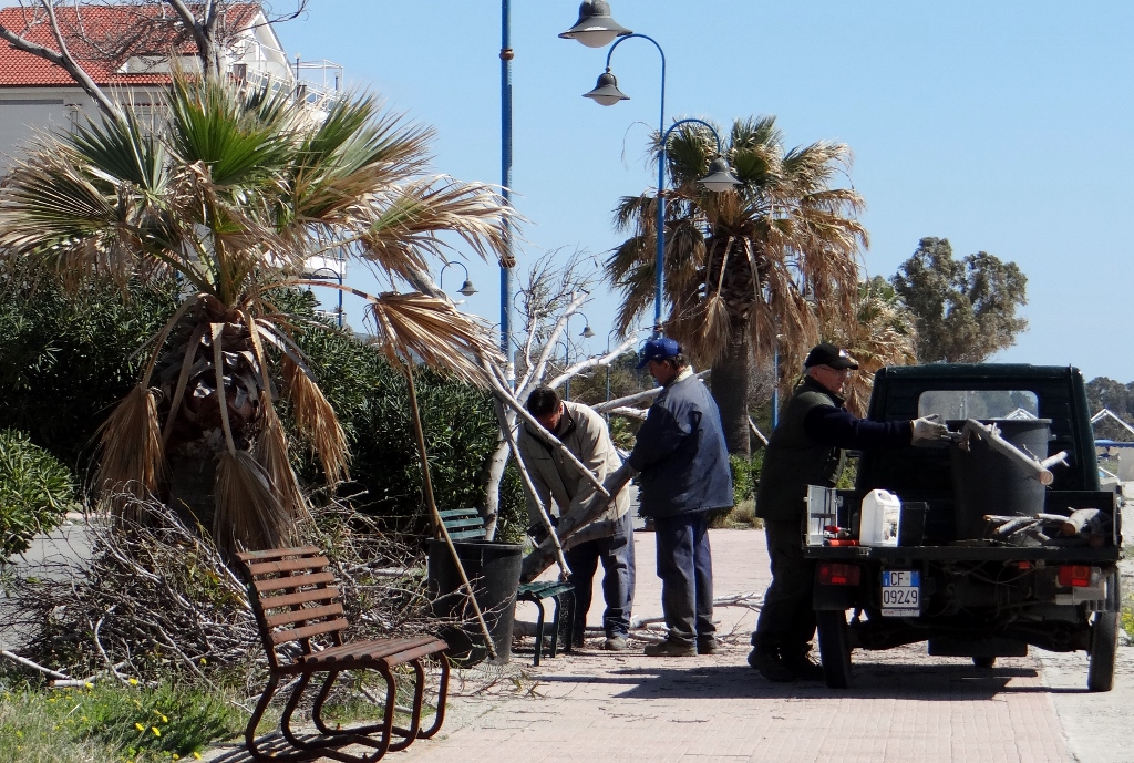 Back at Dave three men armed with a chainsaw were working on the fallen tree, the back of their Piaggio Ape was filled with logs and off they went, so we’re not sure if it was their job or they spotted a free wood opportunity and grasped it.