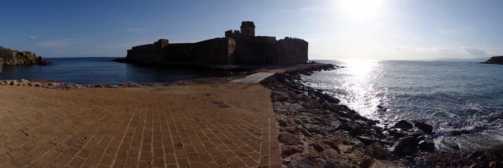 Reviewing our guidebooks again we still got the feeling that this part of Italy has little to offer except for lovely beaches and free parking places. Any other time this would be our dream place, pottering along stopping at different beaches every day, but we’ve been in Italy for a long time and are in need of a new country. Greece is calling so we’re heading over to the heel of Italy to catch a ferry after Easter. We opted to drive on, picking out Le Castella as a suitable looking place to stop for the night.