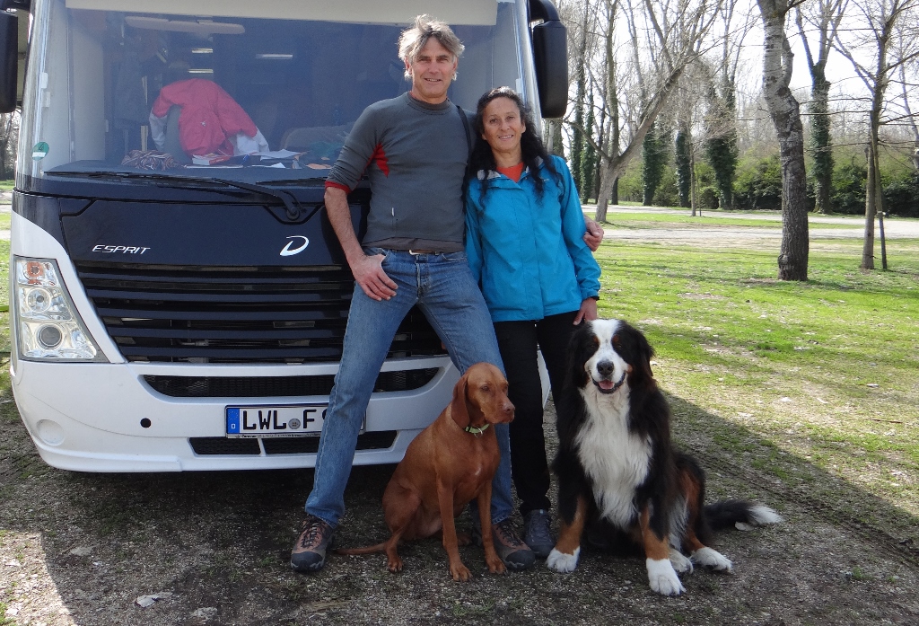 Talking with travellers is always fascinating. Understanding each other’s motivation for moving around the world, discussing difficulties overcome and enduring, sharing on-the-ground experience of places to go, chatting about work, life experiences and even **TABOO ALERT FOLKS** money. Dave’s a policeman and Bern a paramedic, both clearly time-served, focussed, and hard working. Both jobs I deem ‘real’ compared to my 20 years surreal experience working in offices, where I never had to handle a single emergency other than the odd late PowerPoint presentation. They’re travelling with their two fabulous pooches, Scarlett (a Hungarian Vizsla, so called because of her red fur), and Tenzing (from the famous Sherpa, since he’s a Burnese Mountain Dog). Their tale of being hardly able to walk in Switzerland as each and every tourist wanted a photo with him, were hilarious.