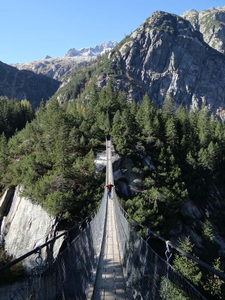 With no Gelmerseebahn for kicks, we had to make do with the adjacent, and free, rope bridge over the canyon.