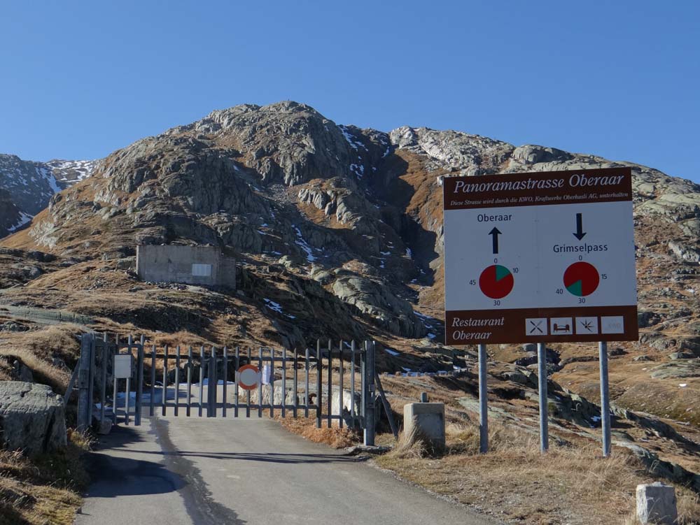 As you can see in the photo above, a sign stands at the entrance to the road showing the ten minutes per hour traffic is allowed to leave from the pass end, or the other end of the 5km road, giving you between 20 and 30 minutes to make the trip. We arrived just outside of the departure window, but no matter, since the road was closed for the winter.