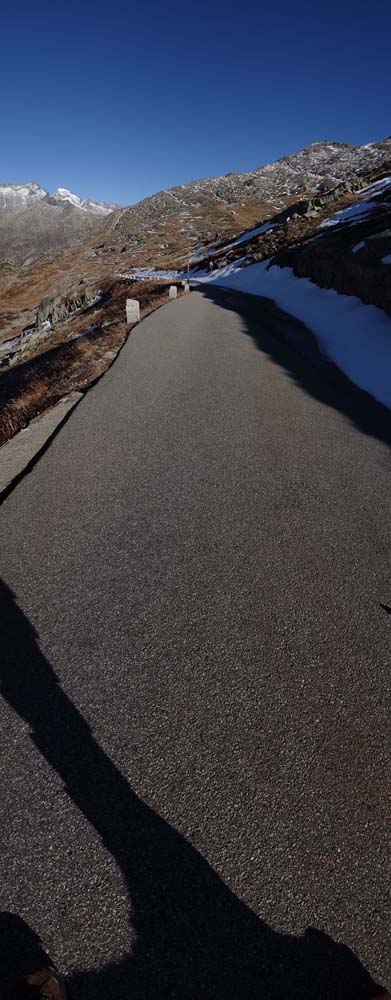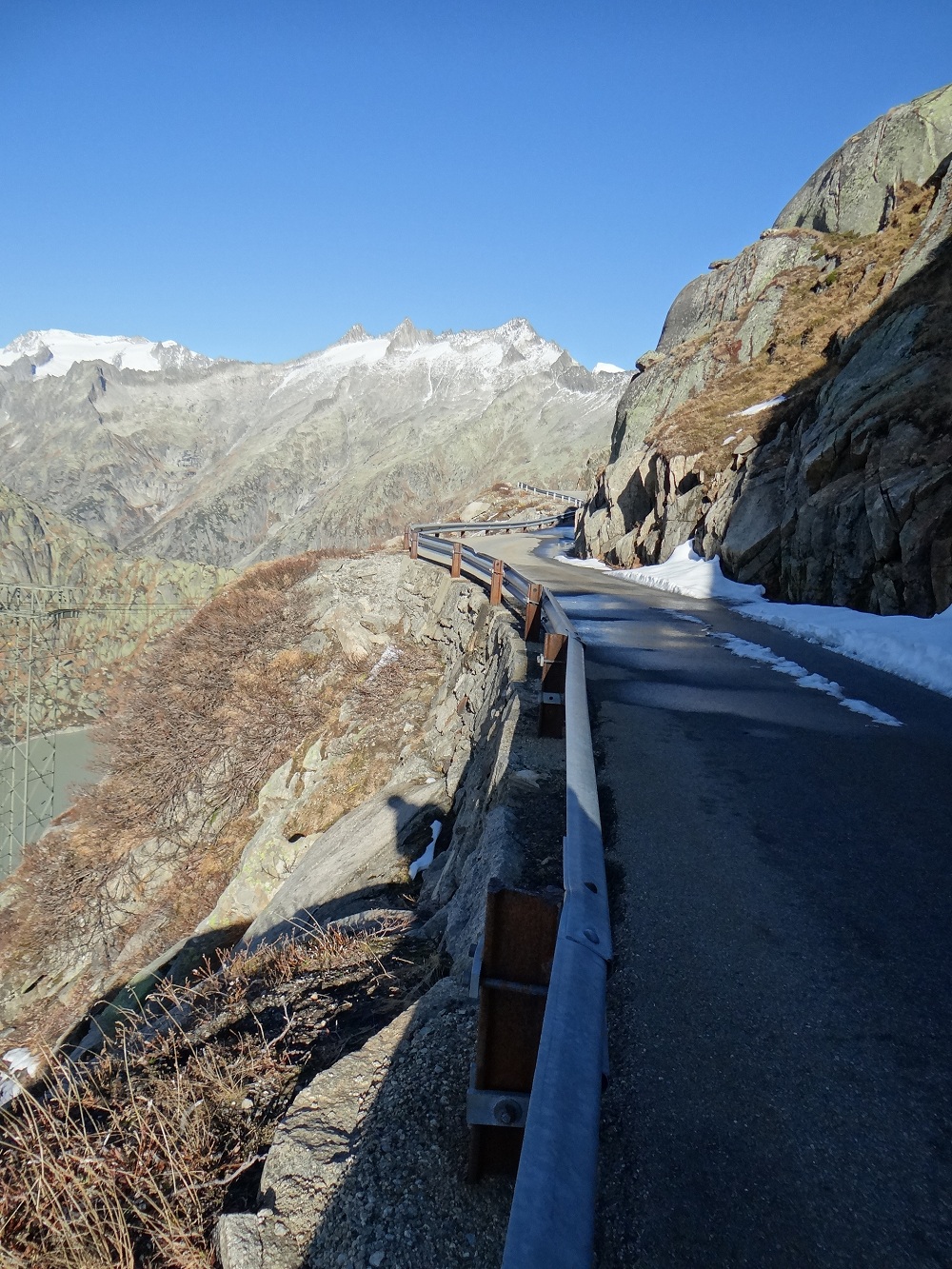 Right-o, back into Dave. Next stop, another Joseph suggestion, the Panoramastrasse Oberaar. This little beauty is the ultimate road referenced in the title, and is a sight to behold. I can imagine no road more dramatic and challenging which can still (depending on season) be tackled in a several-tonne motorhome. A few meters below the crest of the Grimsel Pass, it’s a narrow stretch of tarmac leaning into an unforgiving slab of mountain, with often vertical drops guarded only by oft-bent metal barriers, if you’re lucky.