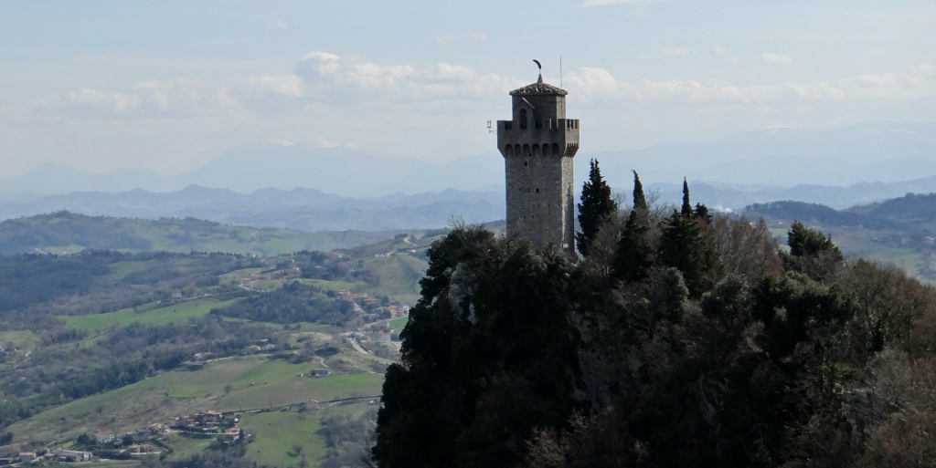 On a warm spring day in March, the city’s very pleasant to wander, and the views east out to the Adriatic and west over the mountains towards Tuscany, are a pure joy. Everyone still speaks Italian, but it’s clear this isn’t Italy. The buildings and pathways are all immaculate, in direct contrast to the sea of Italy which surrounds us. Shops either sell high-end luxury goods, or tat, with not much in between (I’m counting BB guns, knock-off perfume and ‘I love San Marino’ condoms as tat).