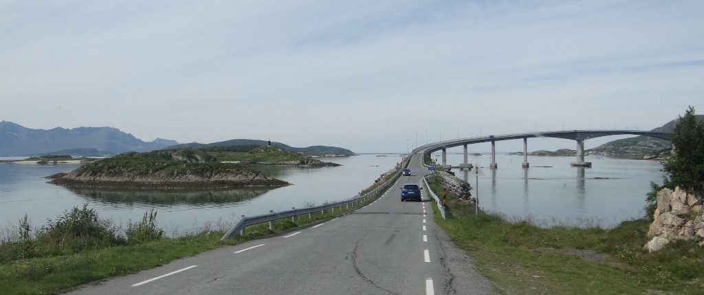 Fancying a look around the island of Senja, but also enjoying this part of our journey so much we didn’t want to get there too quickly, we gave formal instruction to satnav to head for Sommarøy, on the island next to where we ended up. Ju took over the driving, regretting it within about ten minutes as Zagan plunged into a Swiss-cheese labyrinthine of tunnels under Tromsøya, complete with enough underground roundabouts to make Milton Keynes green-eyed with envy.