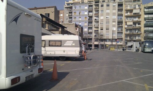 We’re here: N41.40389 E2.18306. It’s a gated, guarded 24hr car park in the centre of Barcelona, 5 minutes from the Sagrada Famila. It’s costing us €20 a night (10am to 10am, credit card only, and you can book on the Internet), which seems like a bargain for such a brilliant location.