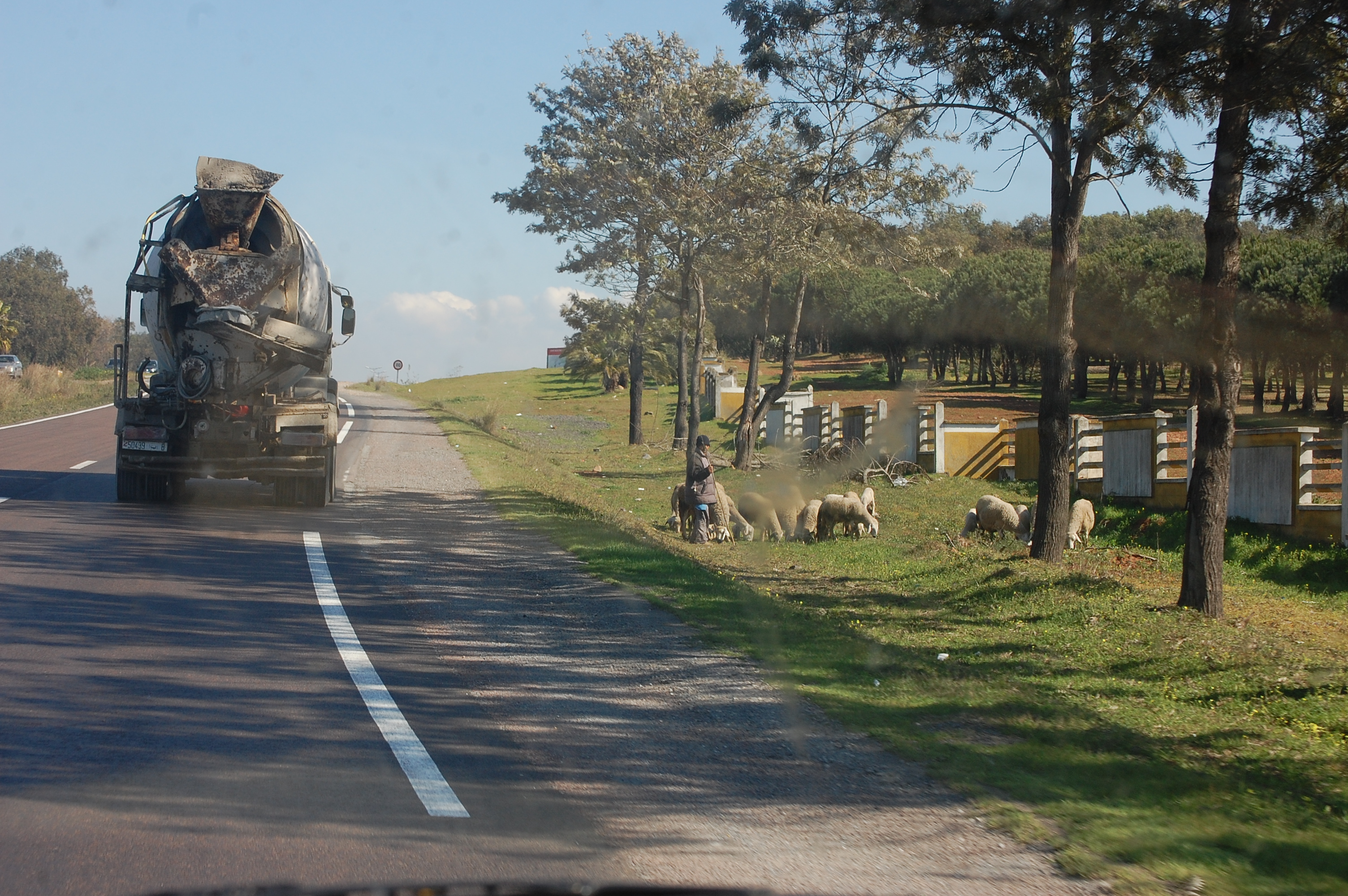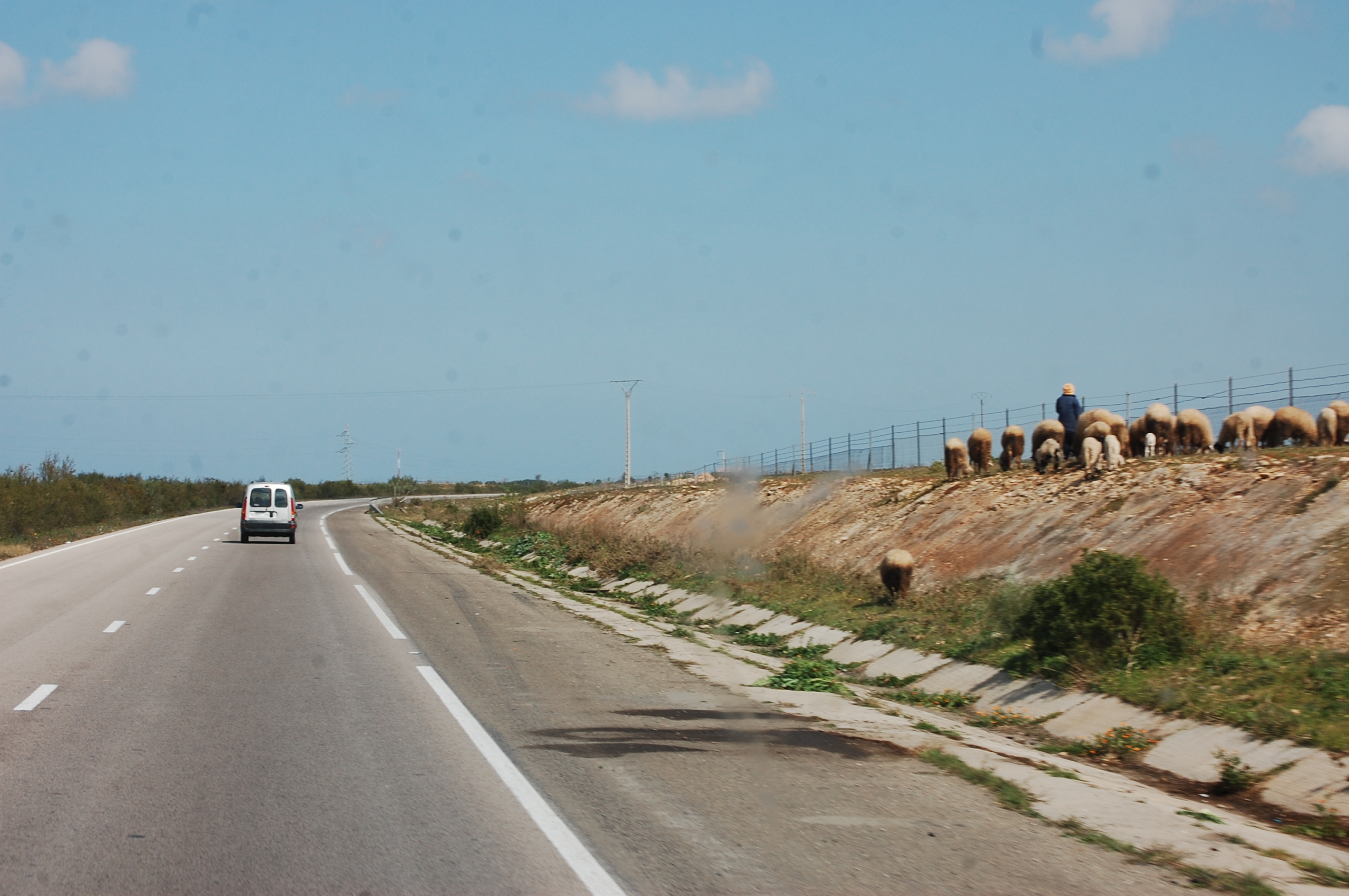 We took the toll road most of the way here, which was the best tarmac we’ve been on in a long time. The charges came to 102dh (about £8.50, a bragin in our eyes, and Dave’s suspension). Even on the toll road you still see people with donkeys wandering along the other side of the fence, sheep grazing on the verge and at one point we passed four motorway maintenance men cutting the bushes in the central reservation – with hand shears!