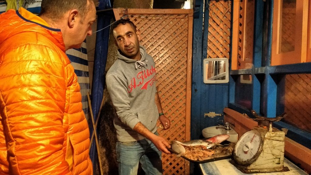 Honest John (aka, The Bast*rd) telling Phil an honest(ish) price – if you ever visit the fish stalls in Essaouira, avoid stall number 10, or don’t say we didn’t warn you!