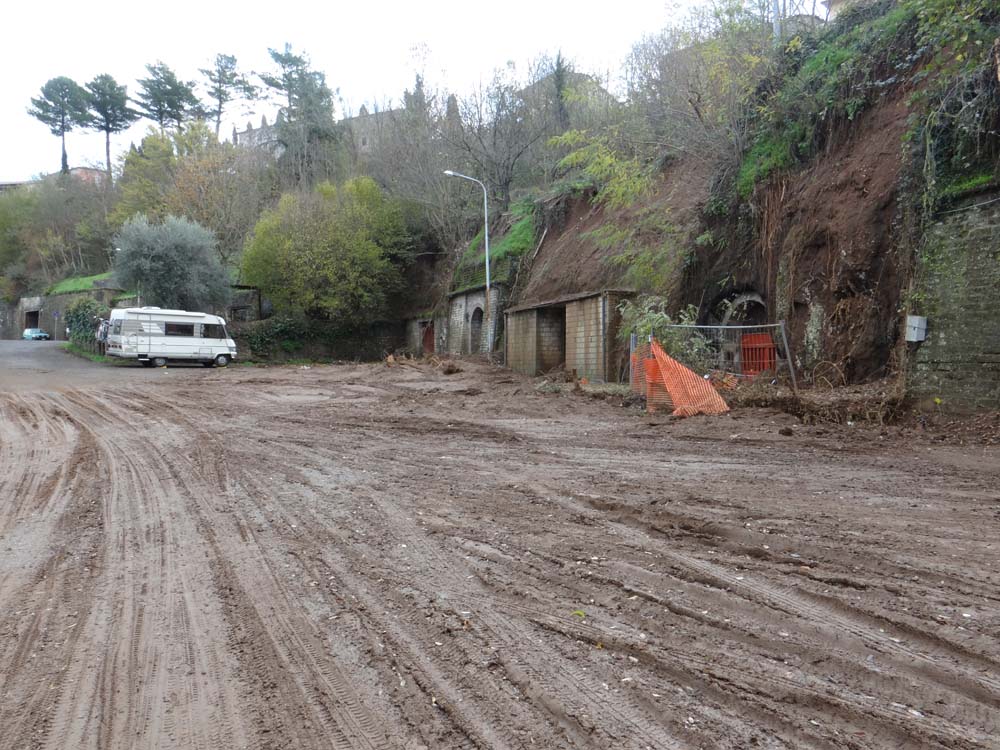 This morning a two stoke engine rattled it’s way past us down to the mud-bath below, followed by a lone man walking down to one of the lock-ups. The mud had wiped away a high wall and poured itself and a few trees down into the parking area, blocking some of the doorways, and leaving me wondering how we managed to drive over it twice last night without getting stuck. The few people we saw looked dejected, but I’m sure that’s something I projected onto them. Italian folks have had plenty of struggles to deal with over the years.