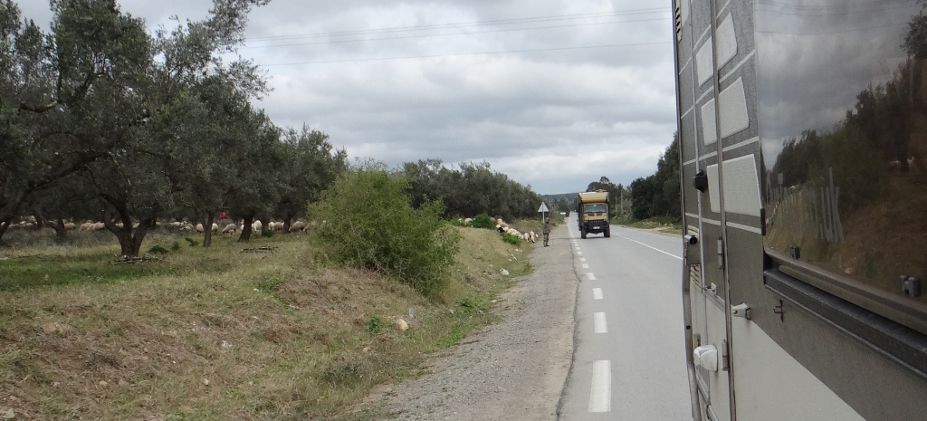 It turned out that everyone on the site was getting the ferry back to Genova tonight and had all come to this place on their first night in Tunisia – so no wonder they all seemed to know each other. This morning the men stood around admiring and discussing adventure trucks, there were two parked next to us that had been taking bikers across the desert. Andreas and Marianne (the Austrians who we met in La Louza) were also catching the ferry so we bid them farewell and set off in convoy with Werner from Germany in his adventure truck.