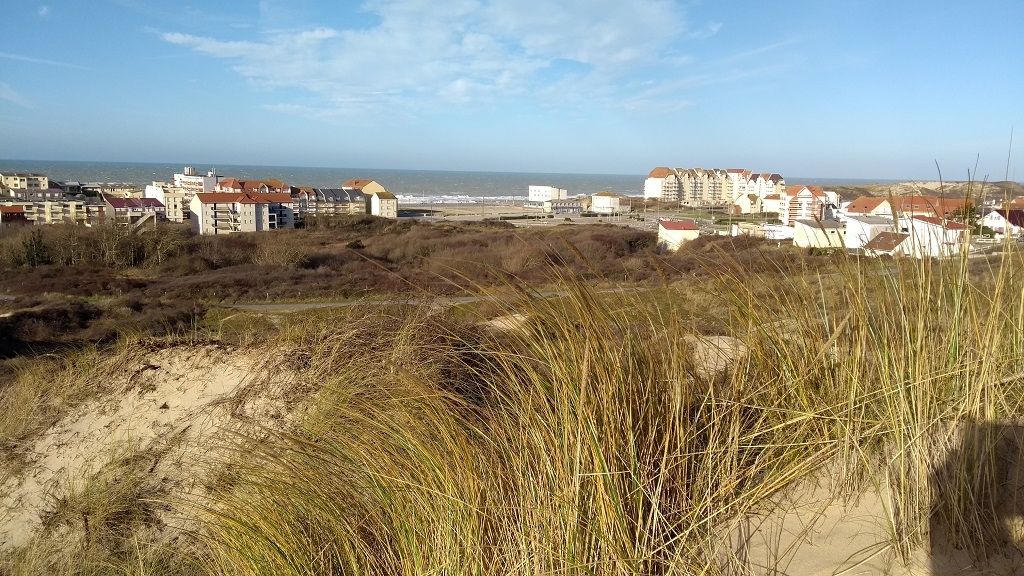 Zagan the motorhome’s up and left the UK! He’s nestled in among the wonderful dune network just inland from the English Channel (La Manche in French) at Stella Plage, south of Le Touquet Paris-Plage (N50.474385, E1.577494). We’re in the town’s free motorhome aire (fast becoming an all-time favourite), along with another British motorhome, a Belgian one and a couple of French vans. We arrived in the dark last night, and were buffeted all night with the local wind (which presumably built the high dunes alongside us, and now shelter us from it).