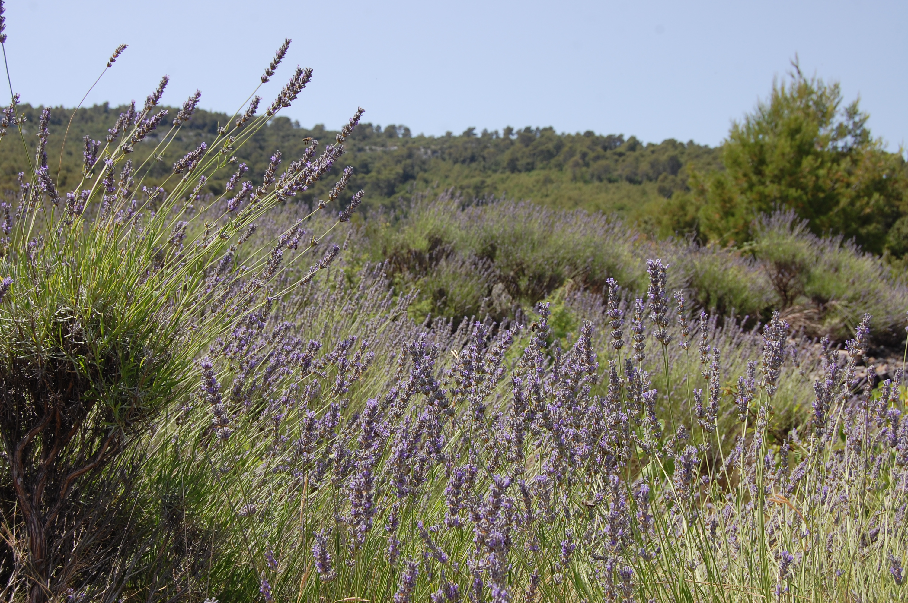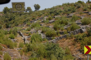 Since this stretch of causeway only sees serious traffic (4 or 5 cars in a row, point man looking harried) when a ferry arrives once an hour, we settled into cruise mode, wondering what the contents of our cupboards would look like after this washing machine of a journey. Half of Hvar is half of nothing, maybe in now small part due to the need to navigate this road to get to it. Sad little huddles of unused, or unloved, villas appear once in a while. In between the countryside is rugged, mysteriously segmented parcels of land, dissected by thick dry stone walls overgrown with scrub. Cyprus trees strike skywards above the tussle of olive trees, like smooth strokes from green-tipped narrow brush. Lavender bushes close to the road call a temporary halt, as Ju nips out to grab a few stems, unsure whether we’re thieves or foragers.