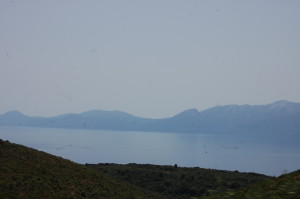 Reaching the port without arrest or clashes of wing mirror, we waited in a small queue, the ferry already docked and it’s ramp softly resting on doormats. Ticket bought, and no sign of a departure time, we wander to the water to gaze in amazement at the clarity of the stuff. Accompanied by half the queue members sat behind us, we’re all caught out at the ferry staff are suddenly impatiently whistling and waving us over. Legging it back to Dave, we’re first on. A car arriving ticketless, as the ramp was sliding away from the dock, was last. His wife just had time to grab a ticket and calmly step on board.