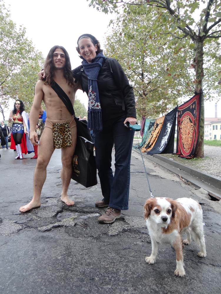 Huh? Hundreds of cars? In a European town, a Catholic one, on a Sunday? What’s going on, have we finally arrived somewhere to coincide with something happening. Oh yeah! It’s only the Lucca 2012 Comics and Games festival, and it’s HUGE, taking over most of the medieval walled town. An expected rain-threatened wander around quiet streets and churches turned into a spot-the-character fest. Thousands walked the streets, a good number of them in stunningly realistic costumes. Captain Jack Sparrow was even in character, prancing about as I tapped him on the shoulder for a photo. The tables are turned for the photographer here, pointing a camera in the vague direction of anyone dressed up has them acting up for you, these guys love the attention, and we loved giving it, snapping hundreds of photos.