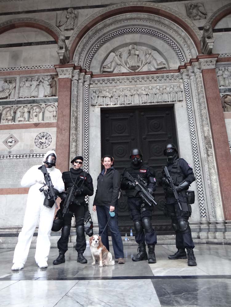 With the exception of a few minutes in the Duomo, Lucca’s ancient streets and buildings have managed to grab all of none of our attention today. It was hard to stare at walls when you’re being whistled out of the way to allow Darth Vader and a procession of storm troopers through.