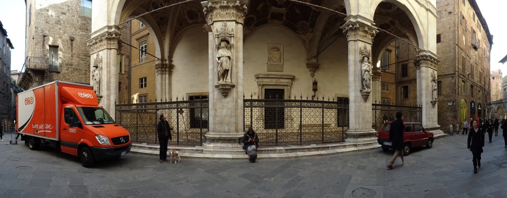 So, with only two or three hours of Siena under our belt, we may even have been beaten in terms of time spent by some of the tour groups legging it from bus to piazza to bus. Enough time was spent there to get an impression of the place though. We’d love to go back; seeing the horse race around that sloping, packed space, and the days of partying leading up to it must be a serious, wallet-whacking adrenalin rush.