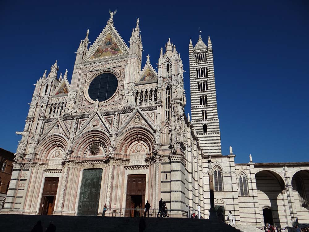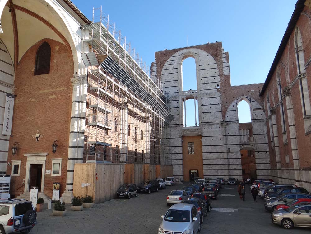 Once Ju had floated back to Earth, we headed over to the duomo. Another confusing place. Siena was an age-old rival of Florence. So much so a 750 year old battle in which Siena, the underdog, beat Florence is still brought up in chants during contemporary sporting contests, if you believe Wikipedia. What’s for sure: Siena lost the ‘whose-got-the-best-cathedral’ contest. Not that they didn’t have ambition aiming to build the biggest in Italy outside Rome, but it went wrong, cash ran out, it started to fall to pieces as it was built, you name it.
