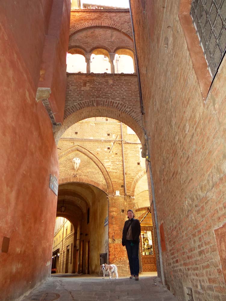 It’s all very confusing, all very Italian. Given the small, sloping size the piazza, and the tall echoing buildings around it, witnessing the 75 second race must be one absolutely hair-raising experience. We drew straws for the climbing of the bell tower. Ju won/lost, depending on your viewpoint, and pranced off up the 400 steps for a view to the edge of the Earth. Charlie and I stayed in the square in the sun. I had a lie down, drank some squash, and unleashed the beast so he could run around after bits of his food again. A tiny sign at the edge of the square informed me these acts were all illegal, but of course no-one cared.
