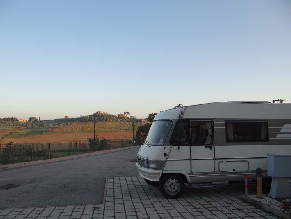 Tonight’s free sosta in Torrita di Siena. Tuscan views, also free of charge. At least until 5:30pm when it’s pitch dark.