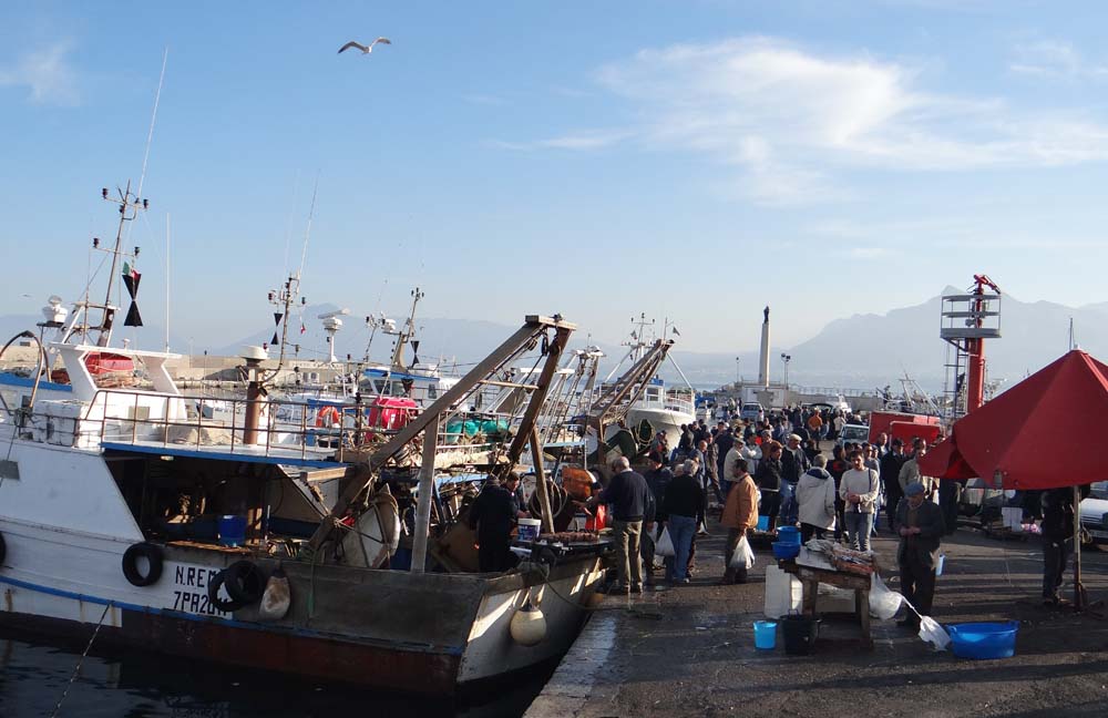 The sun’s slowly leaving us now, the sky’s clear of cloud and is bleeding from pale blue to pink as it dips into the calm ocean. Another boat’s leaving port. Another helmet-less Vespa has rasped it’s way past us. The pile of smelly rubbish threatening to completely engulf the industrial sized bins behind us has continued to grow through the day, one chap dropping his off with a wheelbarrow. This is Sicily; poor, both threatening and un-threatening, intriguing.