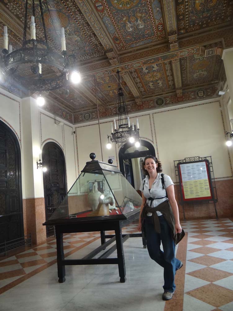 Taormina is a pretty little place, narrow stone streets, hanging washing and drifting xmas music. With some more guidance, this time the Italian aided with hand gesturing (up, up, left, right, up some more), we tootled through the town, past a row of thankfully-shut stalls and up to the booth for the theatre. It took four people to sell us a couple of tickets (€8 each, not cheap, but then half of it’s probably going to the Mafia), and in we went.