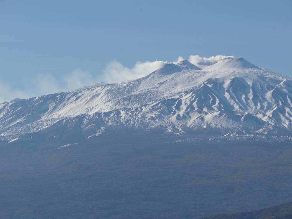 Etna, imposing and thrilling to think we can get up there amid the elemental snow, ice and black rock.