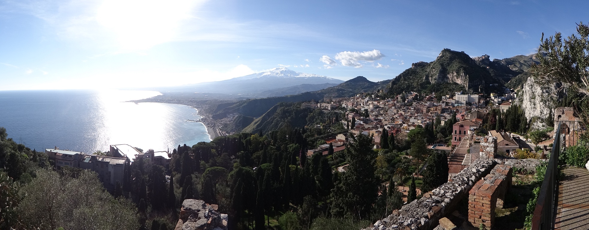 In our view of travelling, there is no ‘must see’ place. If you’re ever around these parts though, we’d suggest the theatre is worth your hard-earned, but pick a day with good visibility or you’ll probably have to pay to come back! The ambience in there, the warming sunlight, the views north towards Messina, south west to Etna and south towards Dave were just mesmerising. We stayed for a couple of hours.
