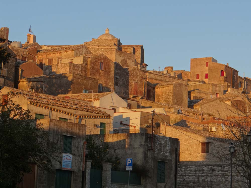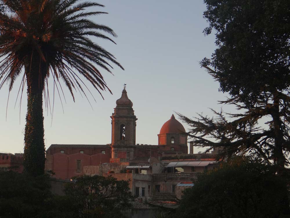 Today’s been a recovery day, erm, for me anyway. The weather was completely clear when we woke so we took another stride around town, still pretty much deserted, churches still closed. One of them bears a sign saying it was built by the Normans. About ten years after they invaded England they’d occupied this part of Sicily, booting out the Arab rulers.