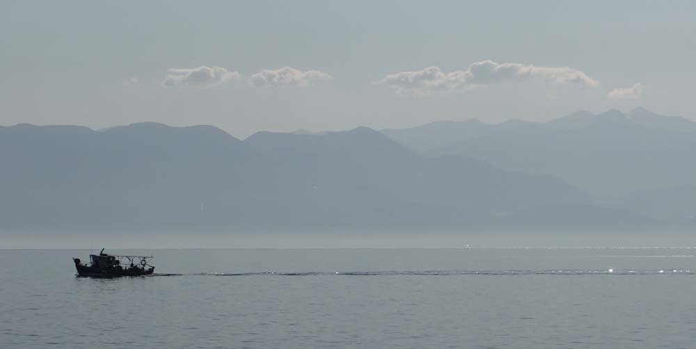 This morning the hired van had moved, swapping places with us and parking up early on the broken quay close to the fish mongers in the town. Boats had crobber-crobbered their way out in the gulf and back all night, their small diesel engines the only break in the silence. Maybe they didn’t fancy being told to do one by the upstart Brits, or were after some of the World’s freshest catch? I pulled on my wetsuit and swam in the ocean, the half-dead floor more than made up for by floating upright to peer at the mountains reflected in the still sea.