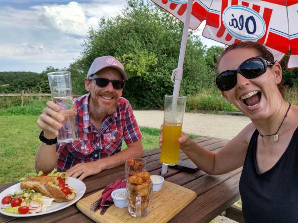 We came across The Red Lion on a ramble and found it to be beautifully devoid of people Friday lunchtime, so we (I) casually flopped down at a table sat alone in a small field at the back. Ju went and signed in, sanitised her hands, ordered food and picked up some drinks inside, where there were only two other people, and came to join me. When we left she had to nip back in and sign out again, job done.