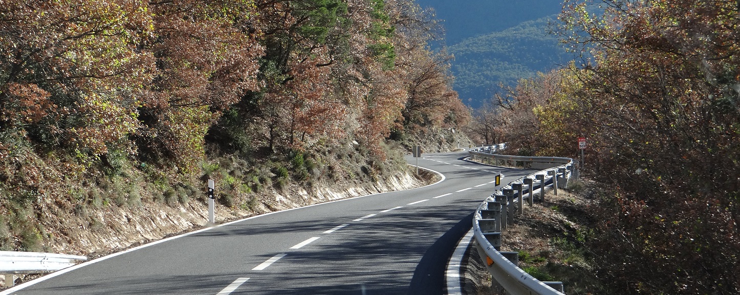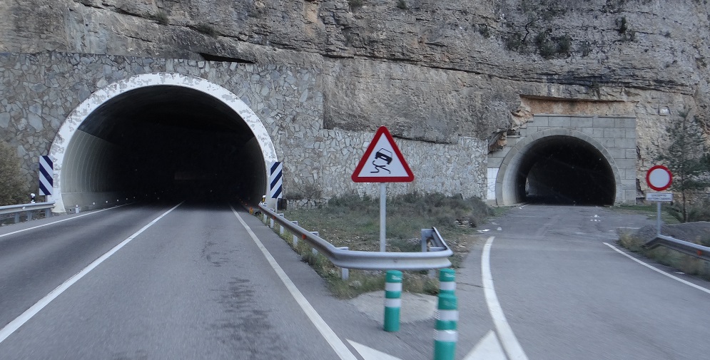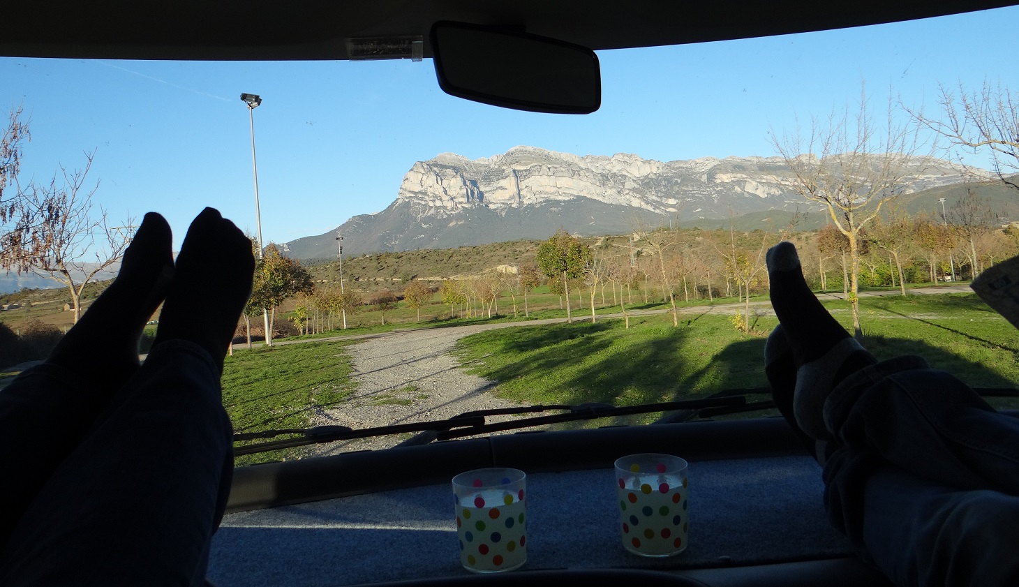 A heat pumped in my shoulder from whatever bit of physiology gets uppity when I’m driving the twisties, and although we’d driven north, my sense of humour had gone south. The car park was big enough for hundreds of cars and buses but nah, we couldn’t sleep here. It’s completely fair of course: the area is a national park, and UNESCO-listed no-less, but my shoulder hurt and being forced back into the tight roads wasn’t on my agenda. Arse. Ju checked with the tourist office and confirmed there **might** be two remaining campsites open, possibly. Previous experience of trying to find out-of-season formal camping in Spain was that there is no out-of-season formal camping in Spain, they’re all shut, the owners in Mallorca supping sangria. Again, not true, but my shoulder hurt. Blub, blub. The other news was the main walk is 6 hours long and no dogs are allowed. A cheese and onion sandwich was munched, and we rolled wheels east.