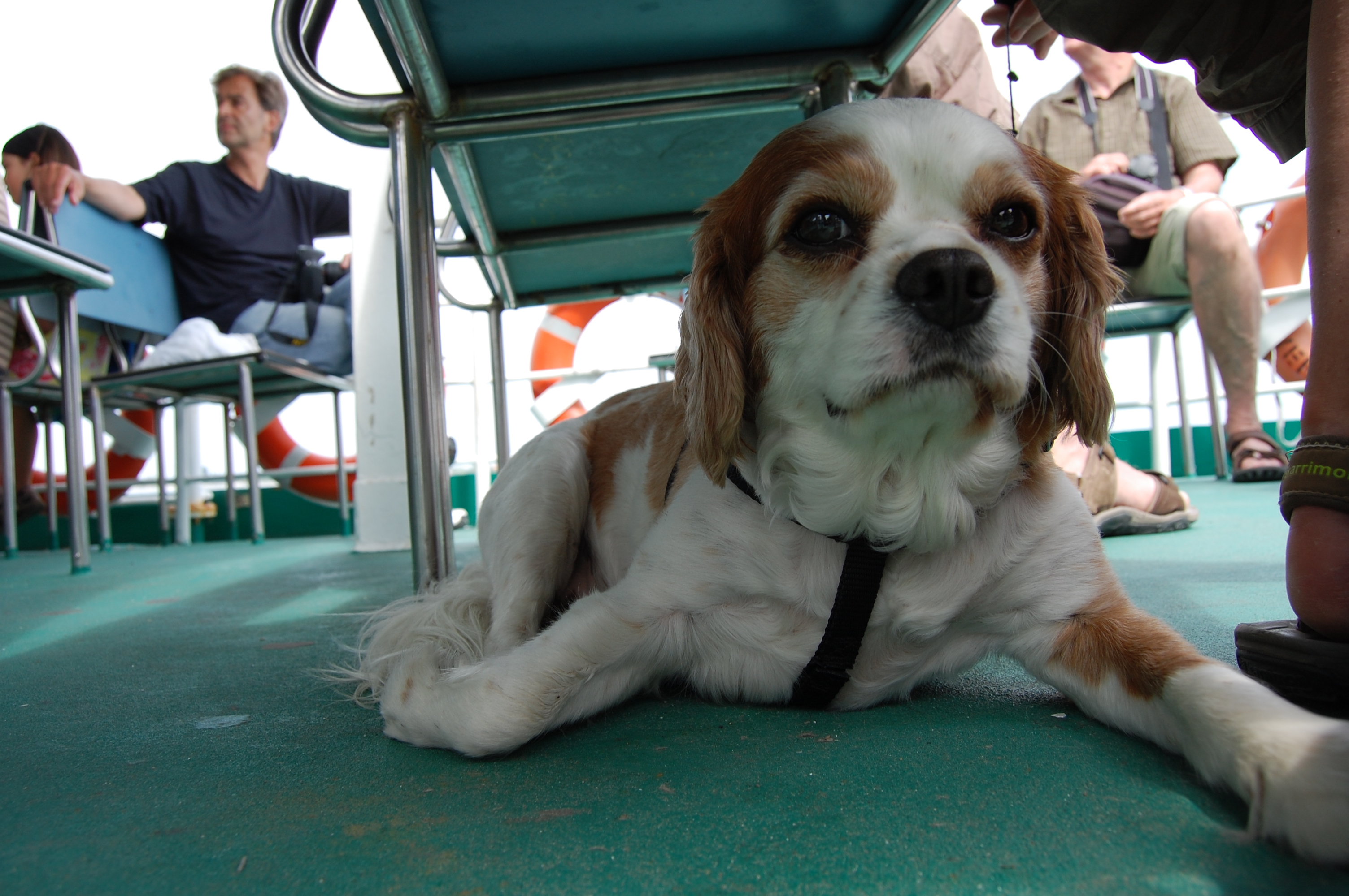 - Charlie adopts his boat position for the day, under seat and lying down
