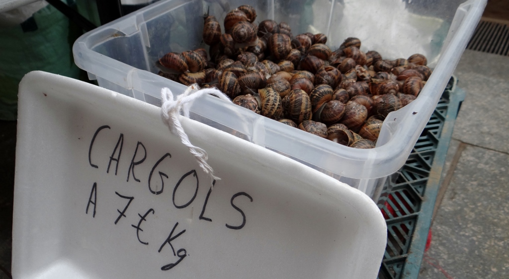 Vic’s market takes place twice a week in the gravelled square we stood and soaked the sun in on Friday: once on a Wednesday and once on Saturday. We decided to make use of the Vic’s free aire for another day so we could go see it, although quite what we expected to find I don’t know. Markets across Europe seem pretty much homogenised with the same shipping containers of Chinese imports being shared about between ’em. Some are more interesting than others, but Vic’s market was fairly standard, despite the fabulous placement in Vic’s timeless old square.
