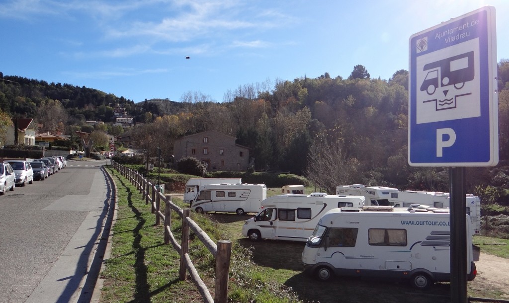 Viladrau motorhome aire. Only us and one other (empty-looking) van left on a Sunday evening in November