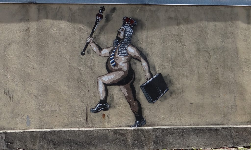And finally, a naked royal sporting an Estonian tie? Presumably some sort of Emperor’s New Clothes reference?
