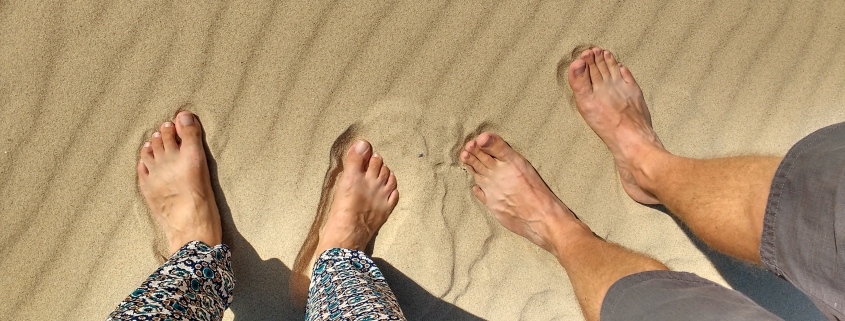 We’re less than 5 miles from Calais here and, if you ignore the fact there are so many other vans flowing around us, and the fact the port is visible from the hills around, you might not know it. The 80 mile Opal Coast’s a lovely part of France, just on the UK’s doorstep. The beach is à deux pas (literally two step’s away – a stone’s throw), and being a little windswept, is a mecca for kite and wind surfers. A promenade runs for a couple of miles along the sea-front, up towards Calais, a lovely place to meander eyeballing speeding kite surfers catapulting themselves into the air, or turning inland to eyeball the mirror-glass bond-villain lairs alongside shanty cabins sprouting drying wetsuits. More than a few cats, dogs and human footprints have been left indelible in the concrete walkway, each telling a tale of realisation and minor panic!
