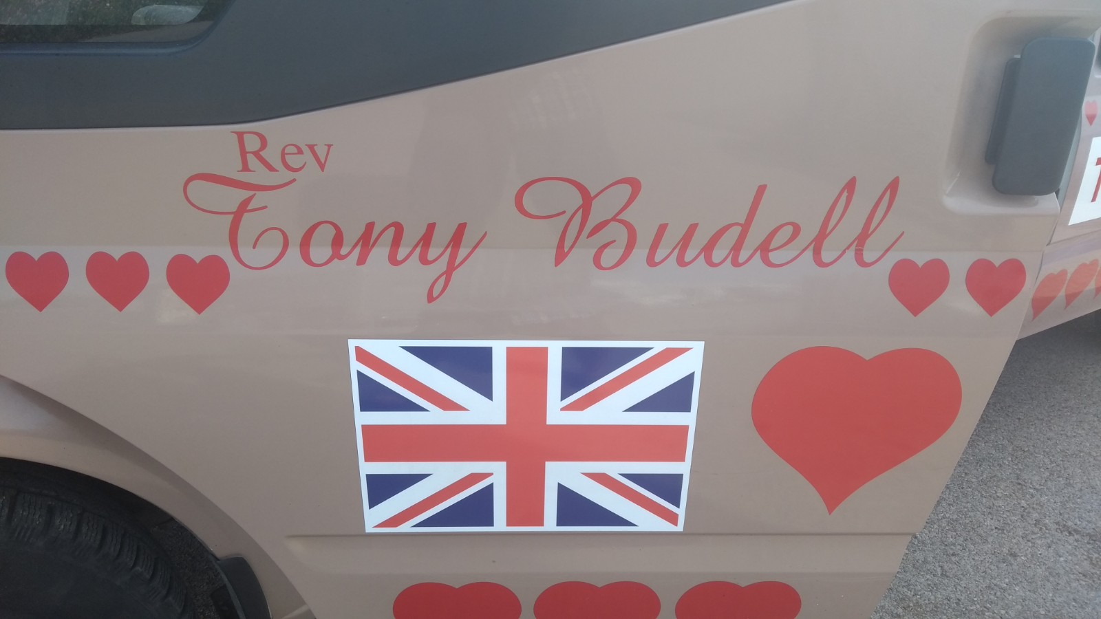 Rev Tony Budell, it turns out, can talk! Intrigued by the van and all the references to Ukraine and Chernobyl, I went over to have a chat. Bloody hell! What a character this chap is! I’ve since been and had three chats with him, listening in awe about how we transformed his life from a disillusioned lorry driver to cancer ward hospital porter to Samaritans call taker all the way through to someone who’s set up orphanages in Ukraine and taken record-breaking convoys of aid to war-torn ex Yugoslavia. He’s met Mother Theresa and the Dalai Lama. He had to leave Ukraine after seven months of a planned year there, as he had radiation sickness. He’s found himself in a minefield (in Kosovo if I remember rightly) and had his window shot out (in France!). It took me a while to clock the small ‘Rev’ above his name on the van, as he’s far from anything I’d think of as a vicar. Nevertheless, he has the white collar somewhere, although he’s reluctant to wear it. As you might imagine, it was quite an experience (a humbling one) talking with him. His overall viewpoint was that few of us can achieve big things, but we can make small changes with a big heart. He takes no salary from his charity, his wife pays the bills, and clearly his overheads are pretty tiny. His website is www.britishhumanitarianaid.co.uk if you want to read more.