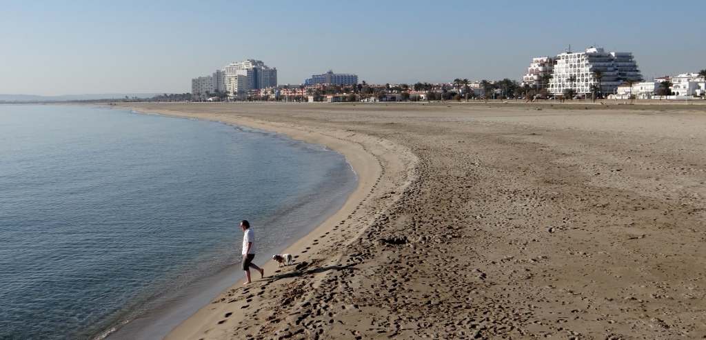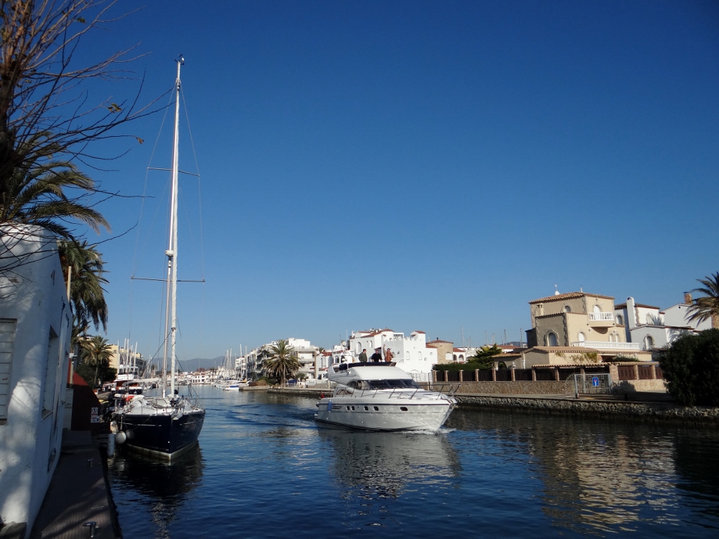 After breakfast we gave Zagan a good hoover out. I have no idea when we last did it, but he was sporting quite a lot of sand, and as it’s the first of the month we’ll remember now when it was done. We then drove down to the entrance to the canal system for Empuribrava as Jay was keen to see if there were any gates to stop the place flooding at high tide. Seems the Bay of Roses isn’t tidal as there was just a dog-leg channel to stop waves washing into the canals.