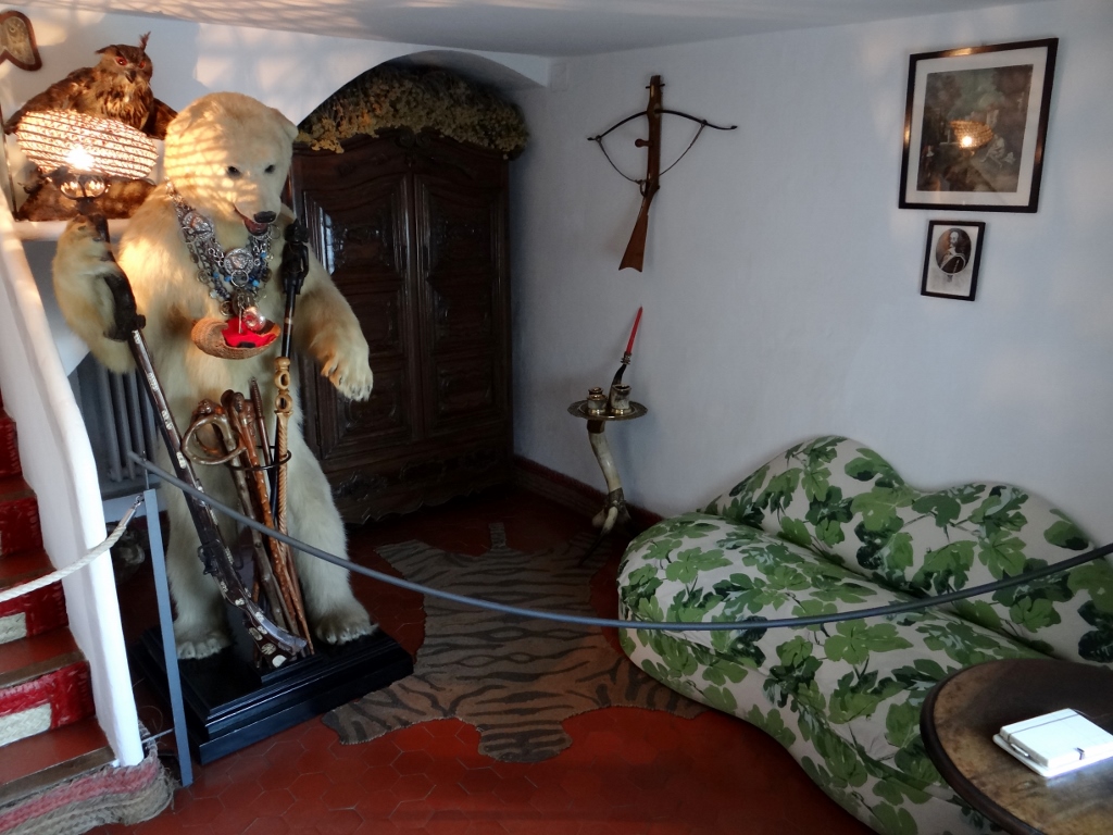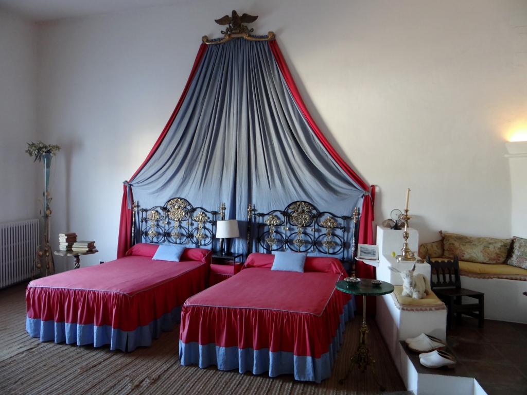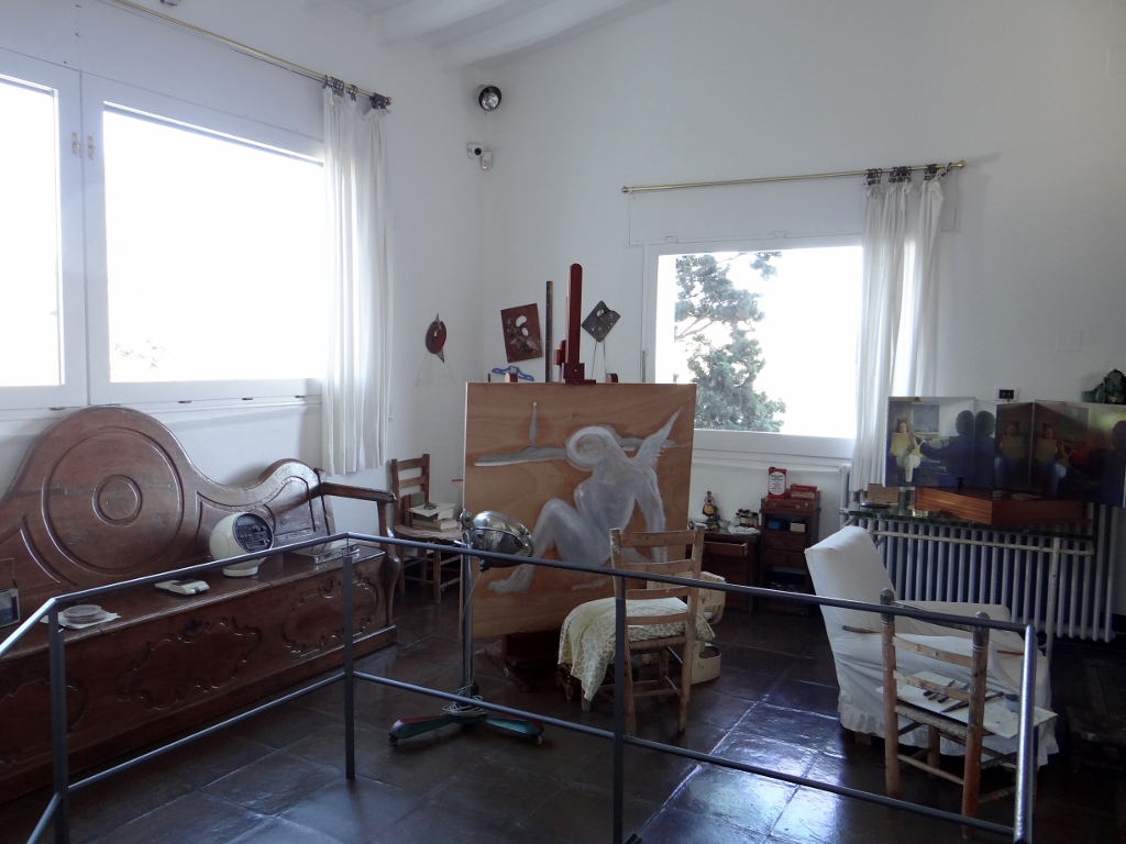 The light and airy studio, where he worked on huge canvasses that could be lowered into the ground on a pulley system so he could reach the top without ladders, leads to small nooks and crannies of rooms; one for his models to prepare in and a darkened room where he experimented with light. The only bedroom includes a bird room for his canaries, a small cage for a cricket so he could always hear them at night, a small bathroom for him and a larger bathroom for his wife Gala.