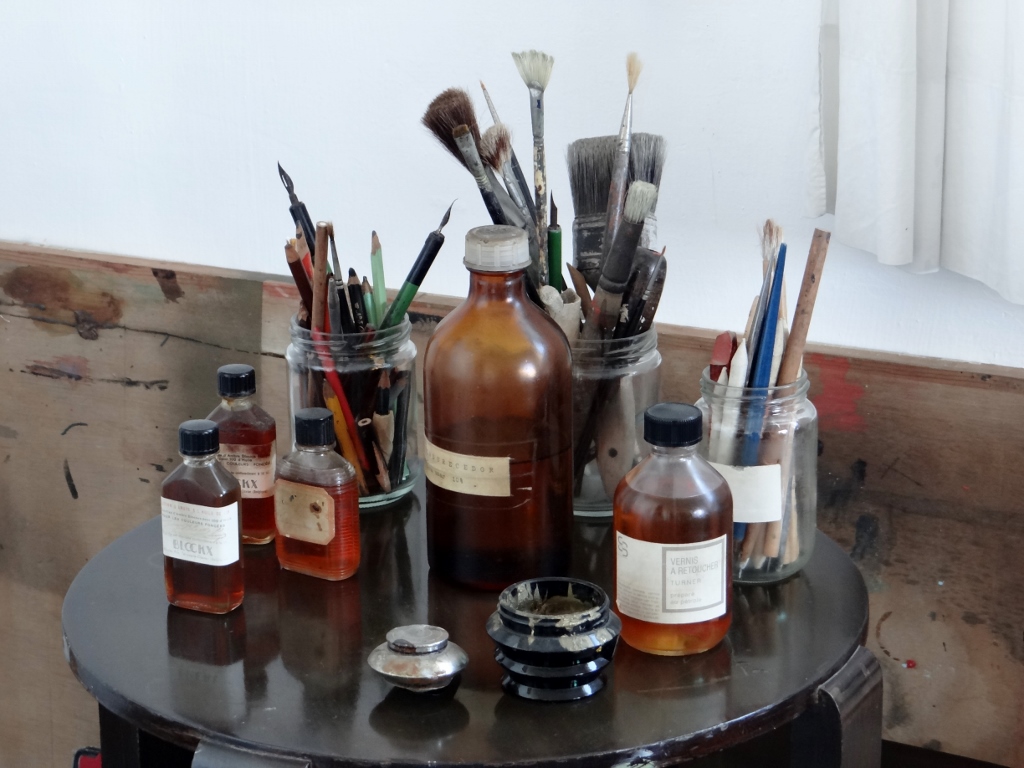 At first I wondered if the place had been staged a bit, there were a lot of stuffed animals and rooms bursting with nik-naks, but later you get to see video taken of them in the house, and it is all there, just as it is now. The whole place looked like they would just come back at any moment and pop on their shoes (which sat beside the bed), or Dali pick up a brush and start working again.