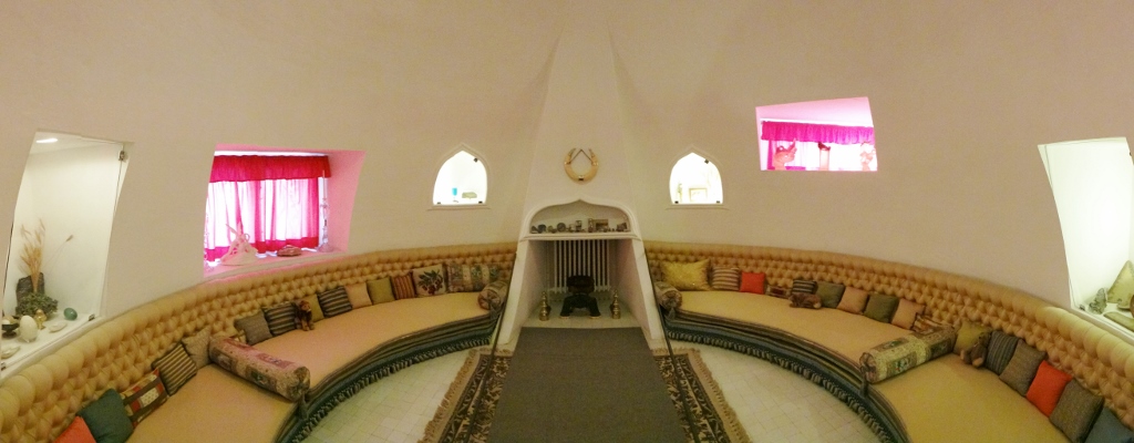 Gala’s bathroom lead to a dressing room, the wardrobe doors covered in photographs of Dali and Gala with famous people from Picasso and The Pope to Laurence Oliver, this leads to Gala’s ‘Oval Room’ which was designed for her to relax in.